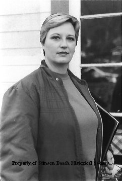 Ruth Danielson, outside the Fire Station, where she was secretary of the Fire Dept. for a number of years in the 1980s.