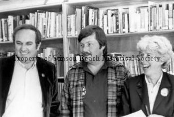 Supervisor Gary Giacomini (L), Marcus White (Center) and Doris Lindfors (R) at an event at the (old) Stinson Beach Library. Doris was a board member.