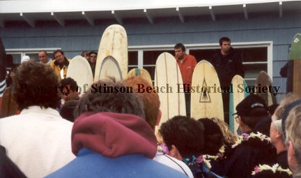 The occasion is a memorial for Bill Wilson, a long time surfer. See file for other photographs